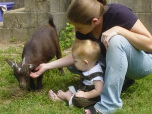 • Allow the goat to come in as the dogs are going out